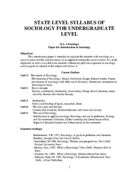Read State Level Syllabus Of Sociology For Undergraduate Level PDF PDF Google eBookstore