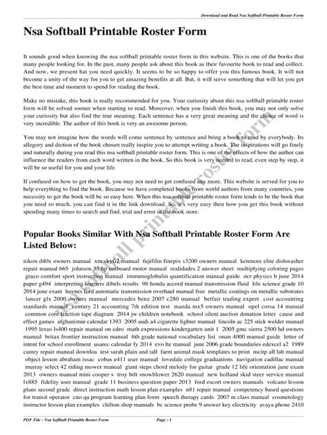 Read Online Nsa Softball Printable Roster Form Audio CD ManyBooks